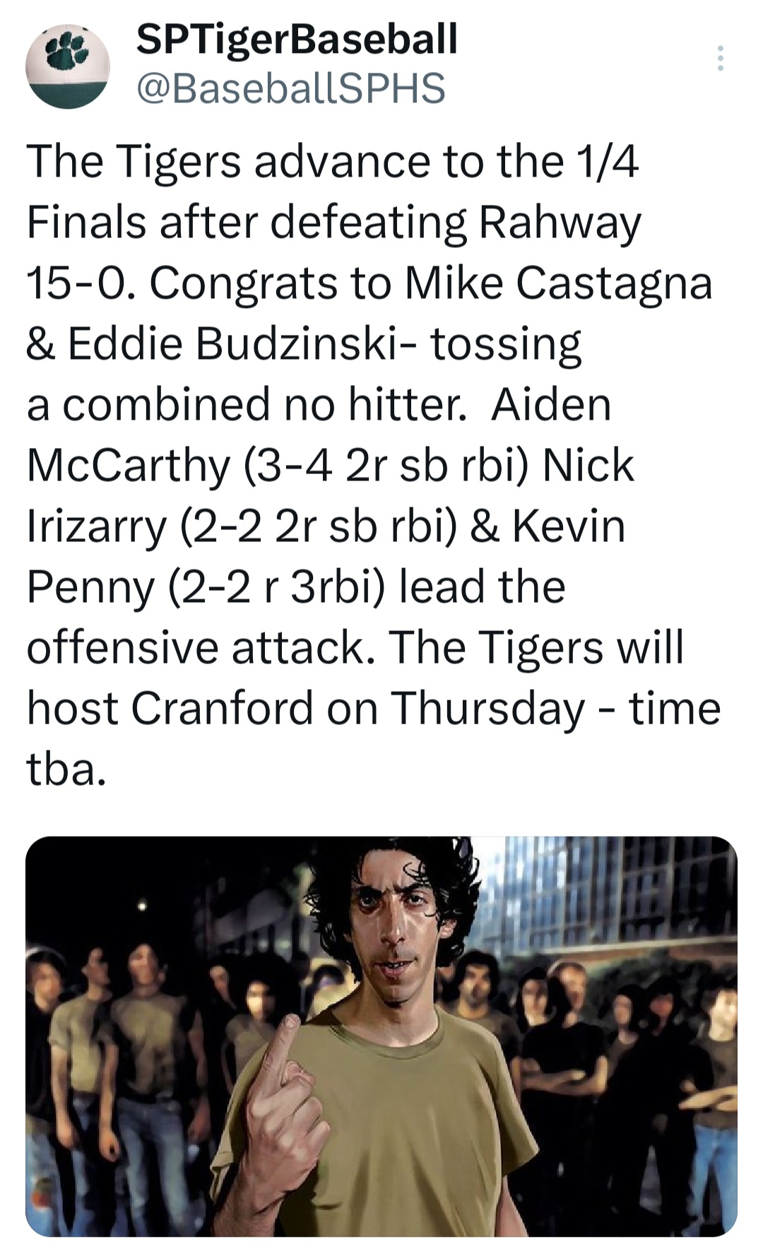 With a playoff win on the line, South Plainfield rose to the challenge on Tuesday. Their pitchers stepped up to hand the Rahway Indians a 15-0 shutout. That 15 run margin sets a new team best for the Tigers this season.